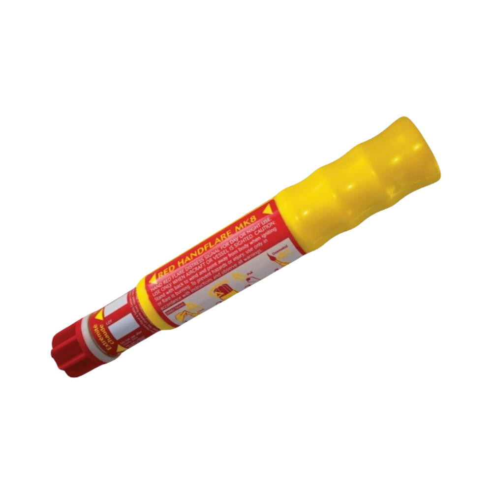 Red hand-held, short range distress signal. Used to pinpoint location by day or night. Burns for 60 seconds at 15,000 candela. Features a unique telescopic handle making it very compact and space saving when stowed in a liferaft. Easily extended and pull wire operated.